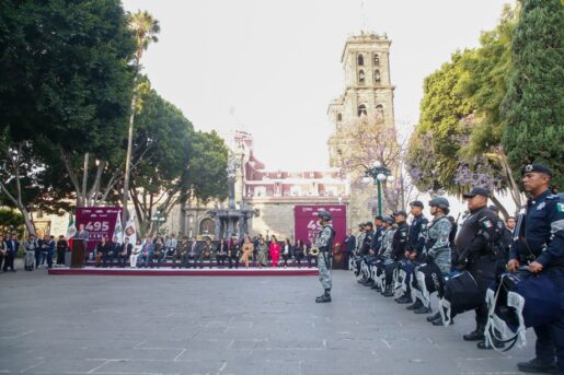 El Gobierno del Estado de Puebla reafirma su compromiso de trabajar con legalidad, coordinación y visión de futuro para consolidar una entidad más justa, segura y próspera, honra su historia y genera bienestar para las y los poblanos. Como parte de la ceremonia conmemorativa, se realizó el pase de revista a elementos de la Secretaría de la Defensa Nacional (DEFENSA), Guardia Nacional (GN), policía estatal, policía municipal y Protección Civil, en reconocimiento a su labor permanente en favor de la seguridad y la paz social.