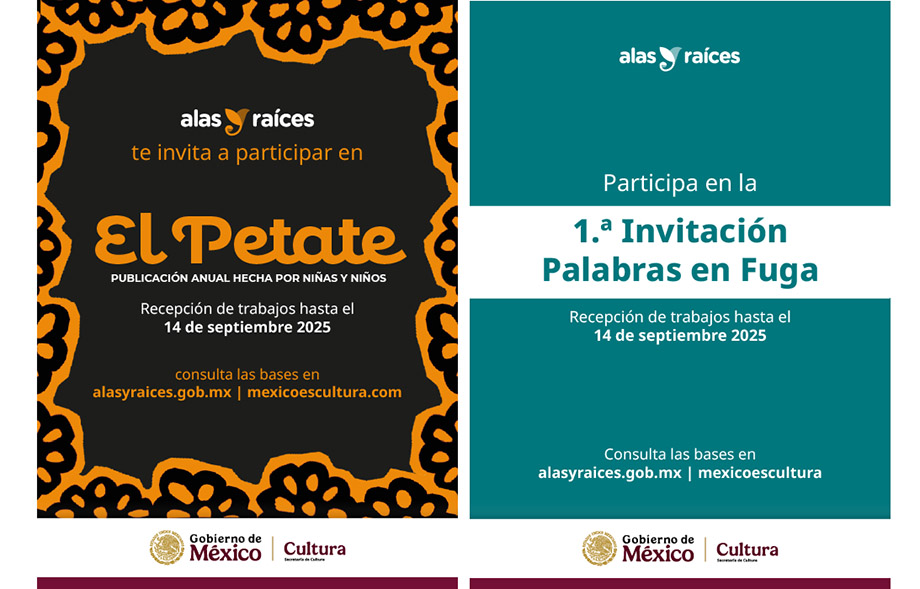 La fecha límite para participar en Palabras en Fuga también es el domingo 14 de septiembre de 2025, y los resultados se darán a conocer el lunes 6 de octubre del mismo año en la página electrónica de Alas y Raíces y en el sitio oficial de la Secretaría de Cultura en la sección Convocatorias.
