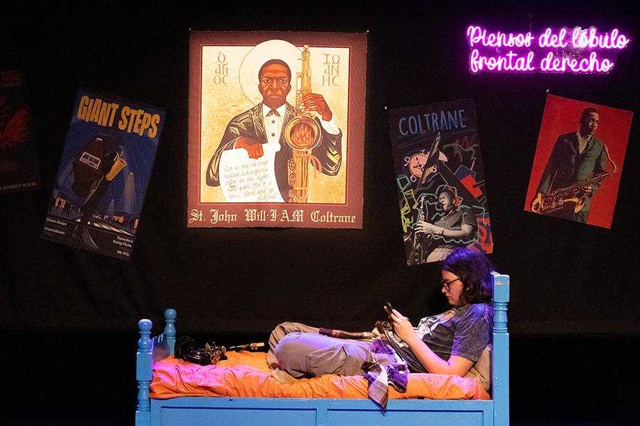 El resultado es un biodrama que se construye como rompecabezas: bloques, pegotes, saltos de tiempo, finales al principio y advertencias al espectador como “Ya acabó la obra, pueden irse ya”. Sin embargo, nadie se levanta. El público permanece, atrapado en una casa de espejos en la que resuenan las obsesiones de Bonilla y las notas de John Coltrane, figura central de la pieza y metáfora de la lucha contra la adicción, el caos y el resurgir creativo.