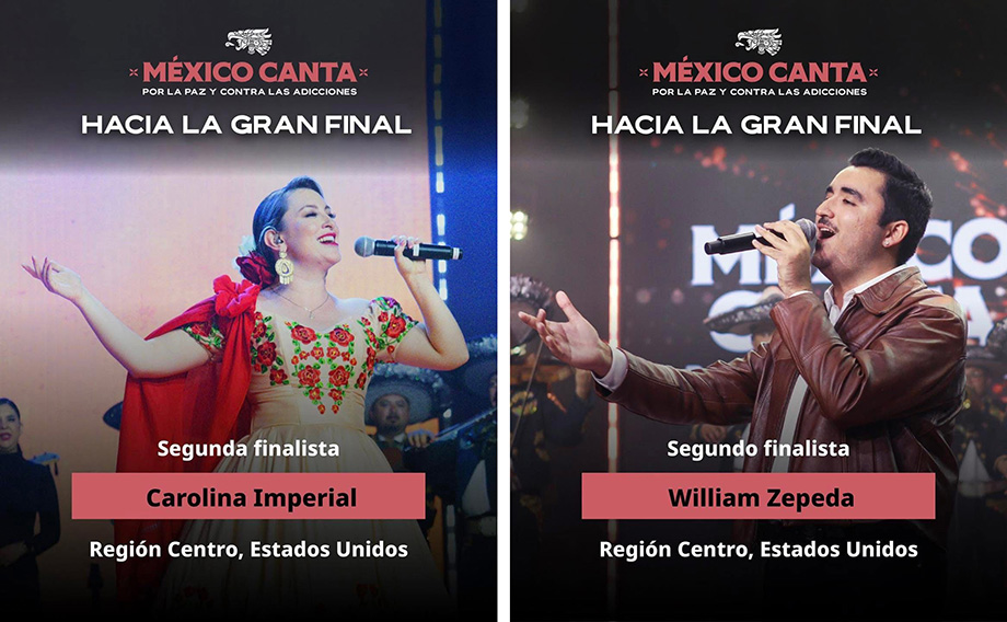 Como reconocimiento del mensaje, los sueños y la potencia musical de los participantes de “México canta por la paz y contra las adicciones”, el día de ayer, domingo 24 de agosto, se decidió que Carolina Imperial y William Zepeda fueran los semifinalistas de la Región Centro de Estados Unidos.
