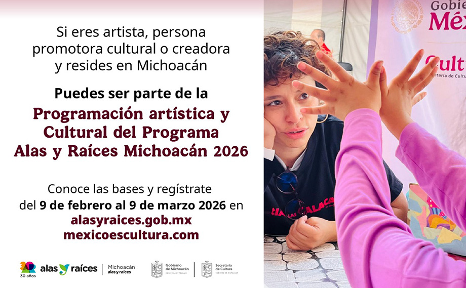 Alas y Raíces invita a ser parte de la programación Artística y Cultural de Alas y Raíces Michoacán