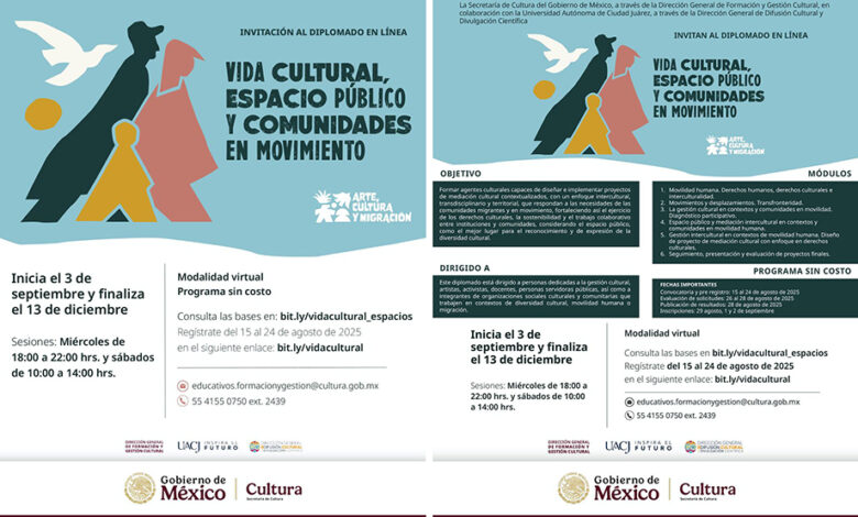 La Secretaría de Cultura del Gobierno de México y la UACJ abren las inscripciones al diplomado “Vida cultural, espacio público y comunidades en movimiento”