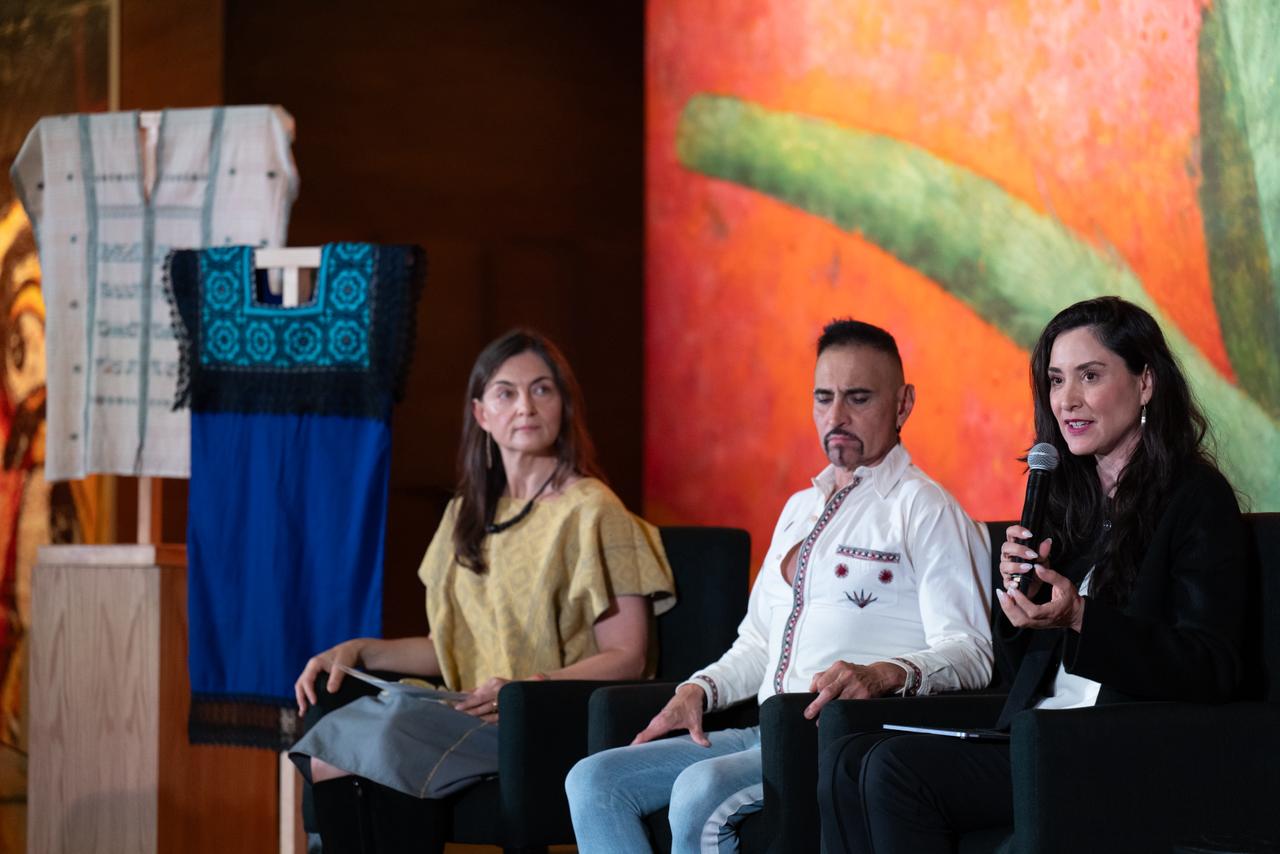 “El arte textil y cualquier artesanía no se crea sola, sino que se crea en un entorno que tiene distintas manifestaciones como la música, la danza, la cocina, rituales y fiestas que hay alrededor de todas esta creación”, expresó Marina Nuñez sobre el despliegue artístico que acompañará a la expoventa en Los Pinos.
