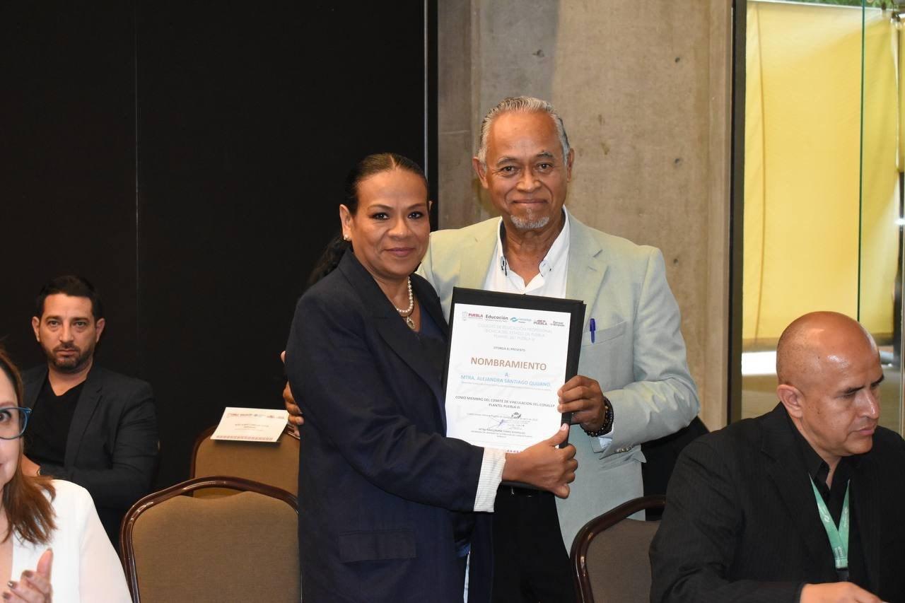 Durante la sesión, se entregaron reconocimientos a representantes de empresas que colaboran con el modelo de educación dual: Eulalio Javier Badillo Flores, director de Vinculación y Alianzas Estratégicas de JB System y presidente del Comité de Vinculación de Conalep Puebla III; Irma Díaz Rivera, gerente general del hotel Four Points by Sheraton Puebla; Karen Manzano Juárez, gerente de Recursos Humanos del hotel Holiday Inn Express Angelópolis; José Octavio Cuapio Morales, representante legal del hotel boutique Casa Reyna; Germán Hernández Olmos, representante legal de Birdev; Mayte Uriostegui, líder de Administración de Factor Humano de A&P Solutions; y Rebeca Bañuelos Guadarrama, directora general de la Comisión Estatal de Agua y Saneamiento del Estado de Puebla (CEASPUE).