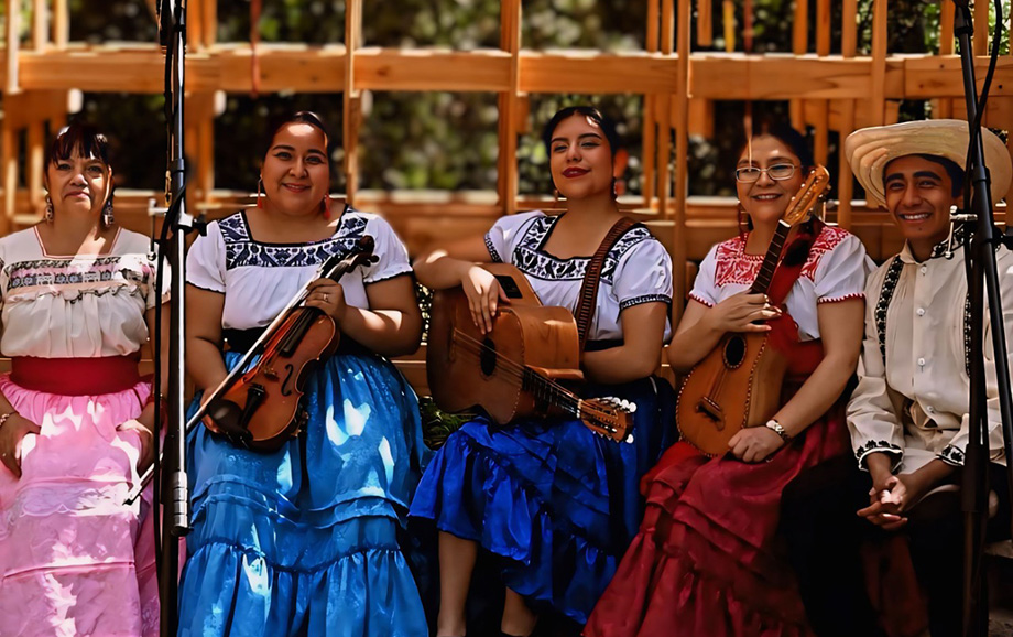 El ensamble lo conforman Gelacia Ramírez (jarana), Claudia Bautista (violín), Tere Hernández (quinta huapanguera) y J. Refugio Gaspar Gómez “Don Cuco” (violín), acompañados por la bailadora Noemí Angélica Santos, en la interpretación de sones y huapangos.