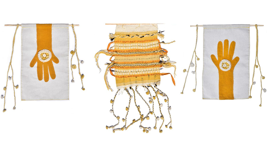 - La alumna del primer semestre de licenciatura de Arte Textil, Evelyn García Bedolla, presentó una pieza, elaborada con fibras naturales, lana y cabello humano