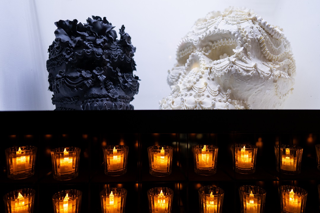 También, se puede apreciar un espacio que hace alusión a un camposanto, lleno de flores de cempasúchil y velas para iluminar el camino, lo que recrea un ambiente íntimo y de profundo significado, que invita a las y los visitantes a conectar con la tradición, la memoria y la espiritualidad que envuelve dicha festividad.