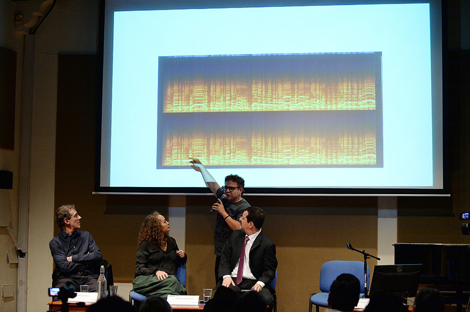 En su intervención, el restaurador digital de audio y postproductor de la Fonoteca Nacional Luis García presentó ejemplos del trabajo técnico con discos y cilindros de inicios del siglo XX. Explicó que la restauración “no busca modernizar el sonido, sino devolver la inteligibilidad pérdida, respetando la huella del tiempo”.