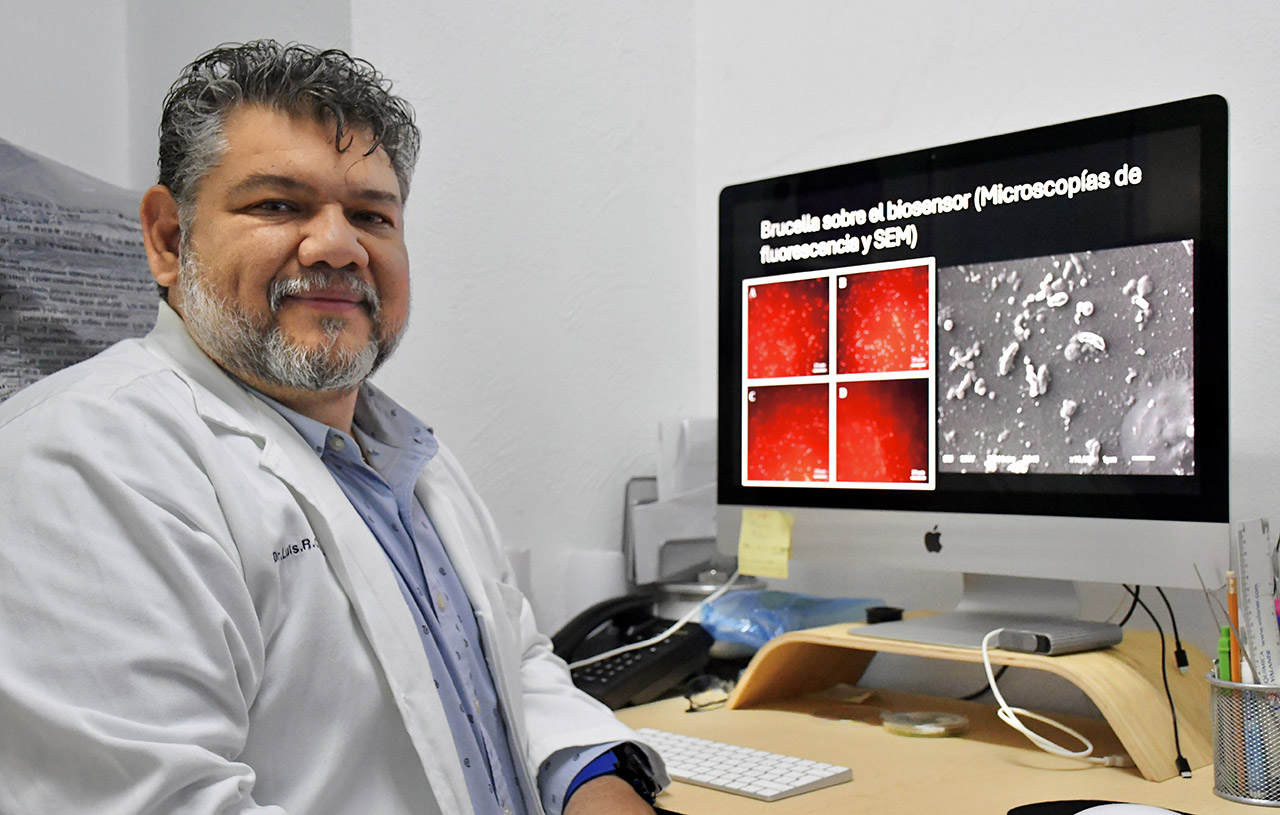 Para la detección de Brucella spp., el académico de la Facultad de Ciencias Biológicas ha desarrollado biosensores basados en soportes de dióxido de silicio con una arquitectura parecida a los utilizados para P. aeruginosa, donde sólo cambian el crosslinker y el anticuerpo. Esta investigación también se encuentra en proceso y participan los doctores Edith Chávez Bravo, del ICUAP, y Efraín Rubio Rosas, de la Dirección de Innovación y Transferencia de Conocimiento (DITCo).