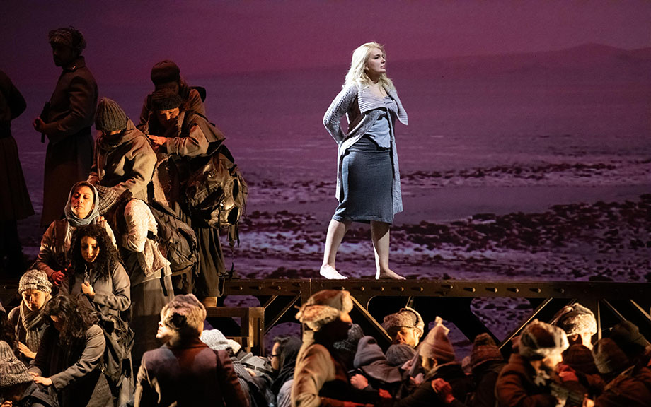 La puesta en escena mantuvo la tensión narrativa en cada cambio de acto, mientras las y los cantantes se movían con gran destreza por el escenario, cuyas luces y sombras parecían jugar un papel tan importante como los propios intérpretes. La escenografía, diseñada por Diego Siliano, ofreció un ambiente sombrío y opresivo, a la altura de la historia que se relataba.