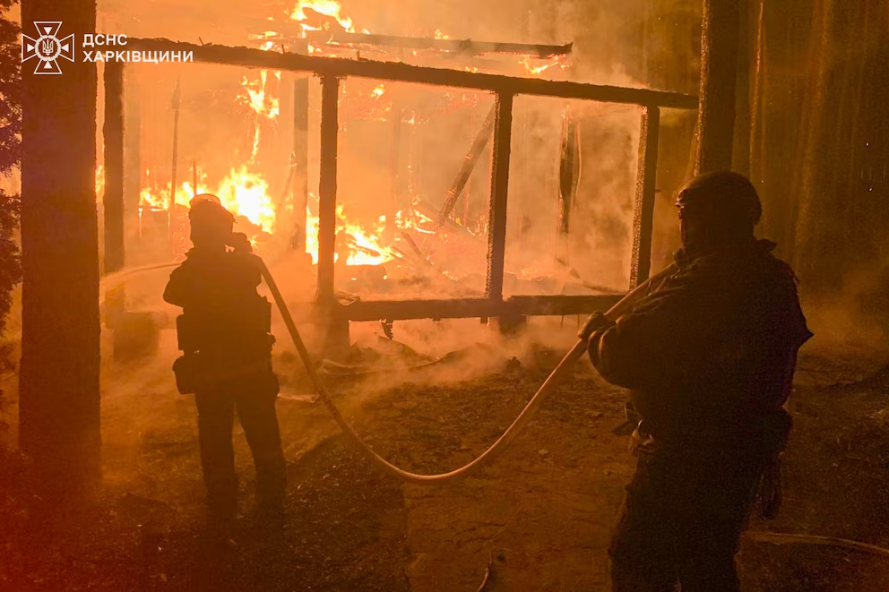 Un cielo oscuro en la noche ucraniana se vio iluminado este domingo tras el ataque del Kremlin a dos instituciones educativas y una vivienda particular en la región de Kharkiv, dejando al menos cinco heridos, incluido un menor.
