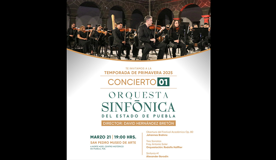 La Secretaría de Arte y Cultura invita al público en general a disfrutar de los conciertos de la Temporada de Primavera de la Orquesta Sinfónica del Estado de Puebla (OSEP), que se llevarán a cabo los viernes, del 21 de marzo al 20 de junio, con entrada libre.