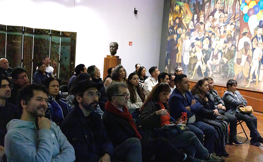 Los asistentes que se reunieron para conocer la historia vieron a través de fotografías, videos y documentos oficiales el proceso administrativo y técnico para que el rescate del mural fuera una realidad, ya que se decidió desmontarlo y trasladarlo en una sola pieza.