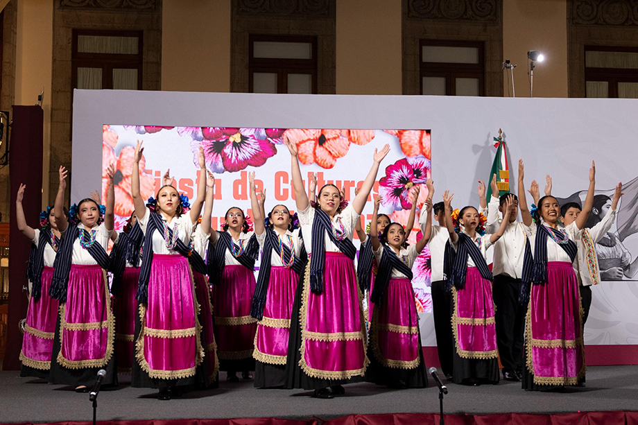 La Jefa del Ejecutivo Federal presenció la interpretación de niñas y niños de la Casa Escolar de la Niñez Indígena «Antrop. Alfonso Caso» de Cuautempan, Puebla (Grupo de Escritura en Lengua Náhuatl), quienes cantaron “Zi döni San Juan” (Flor de San Juan) en lengua Hñähñu y del Coro Comunitario Cantoría Salmantina de Salamanca, Guanajuato, que interpretó “Male Rosita” (Querida Rosita) en lengua P’urhépecha; así como de la Banda Comunitaria de Teotitlán del Valle, Oaxaca, que tocó variaciones de “Zandunga”.
