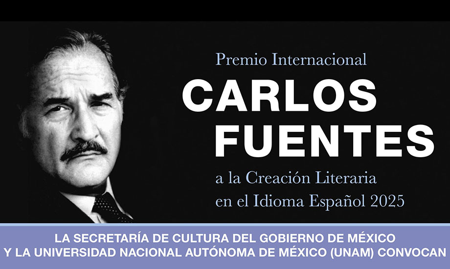 La Secretaría de Cultura del Gobierno de México y la Universidad Nacional Autónoma de México (UNAM) anuncian el lanzamiento de la convocatoria para el Premio Internacional Carlos Fuentes a la Creación Literaria en el Idioma Español 2025.